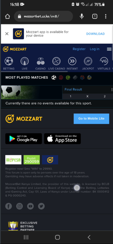 MozzartBet Mobile Version