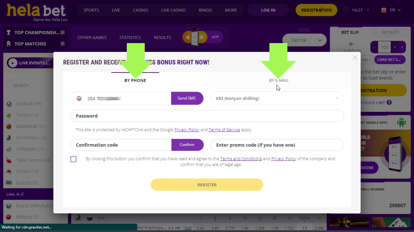 HelaBets provides you with various possibilities for creating an account: