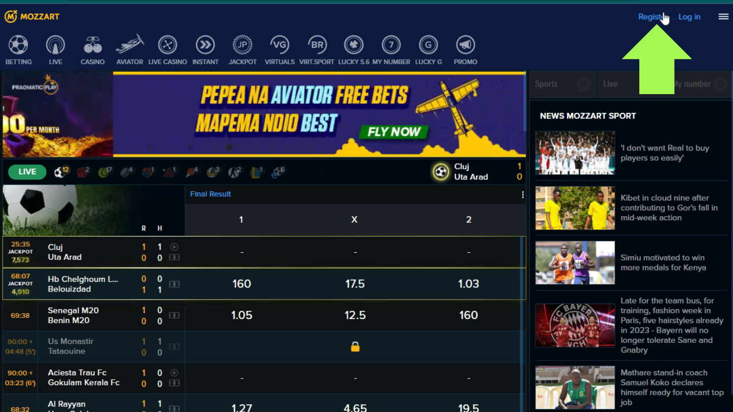- Go to the MozzartBet website.