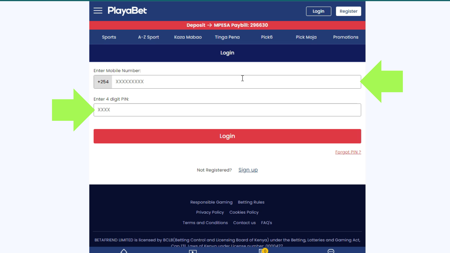 - Enter 296630 as paycheck and your Playabet account number