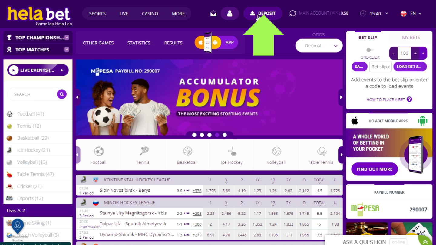 While registering with Helabet, every Kenyan punter can take advantage of the bookie’s first deposit reward. Simply open an account, complete your profile, and deposit at least 112 KES. 100% of the money you paid will be awarded to you right away.