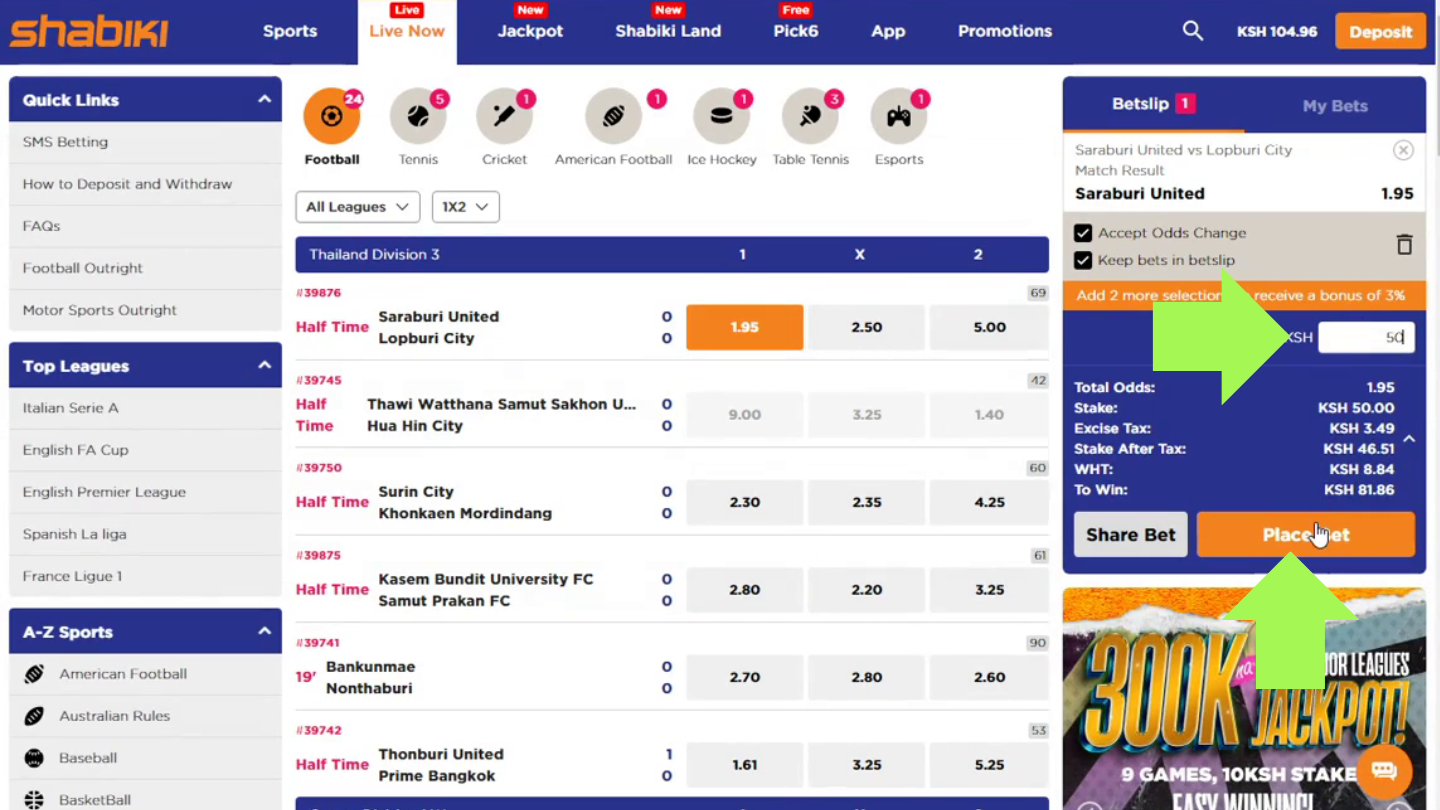 Once you have an account with Shabiki, placing your first bet will be a pretty enjoyable process because the process is so intuitively clear that you can handle it without scrolling endlessly through guides. Here’s how the process goes: