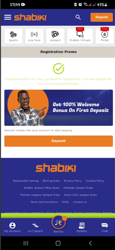 Each bookmaker has specific registration requirements, and as a newbie, you must comply with them to become a user of this betting resource. As a rule, Shabiki needs to be sure that you are at least 18 years old. It is a legal age that allows players in Kenya to bet. Another requirement is your personal information. It should be true and honest. Otherwise, you will be having trouble with the withdrawals of your winnings.