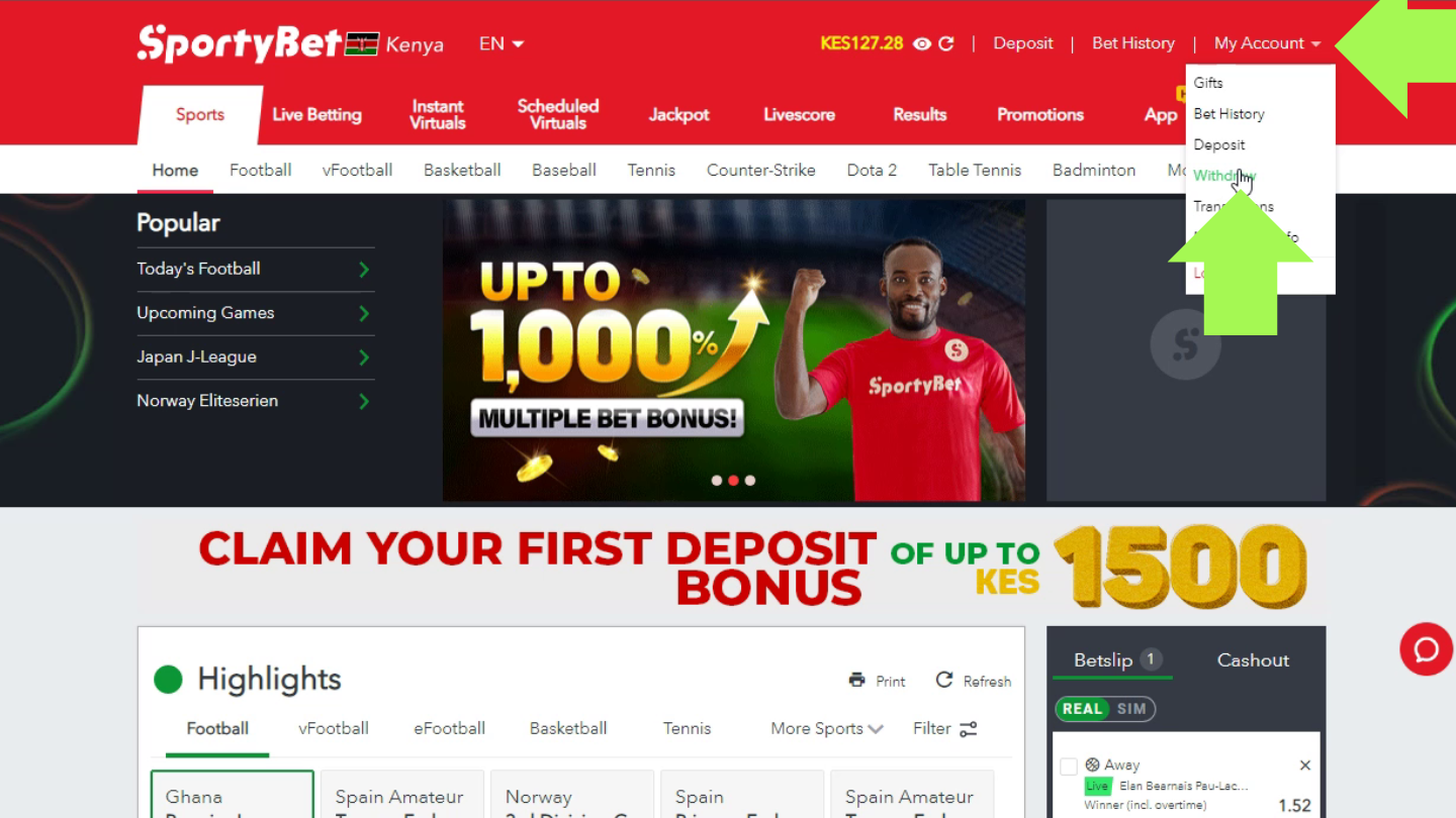 While M-Pesa is the only supported service, withdrawing from the website isn’t the only way to move the funds from SportyBet to your wallet. Let’s take a look at another one.