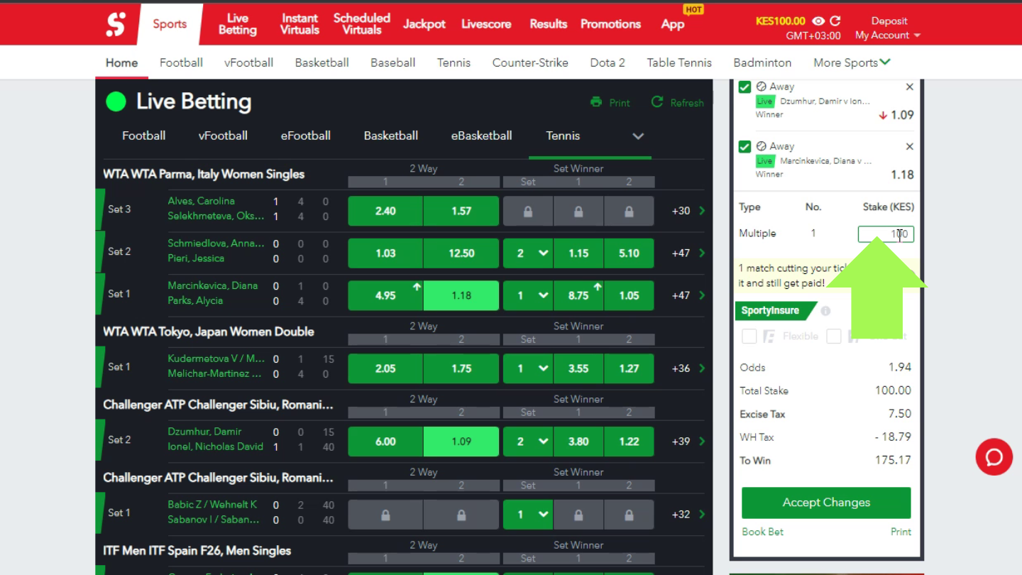 There are certain limits in place. The minimum stake is 1 KES, and the maximum is 500,000 KES. The latter is also applied for multiple bets or tickets. The maximum winning per game is 6,000,000 KES, and the daily limit is 15,000,000 KES per user.