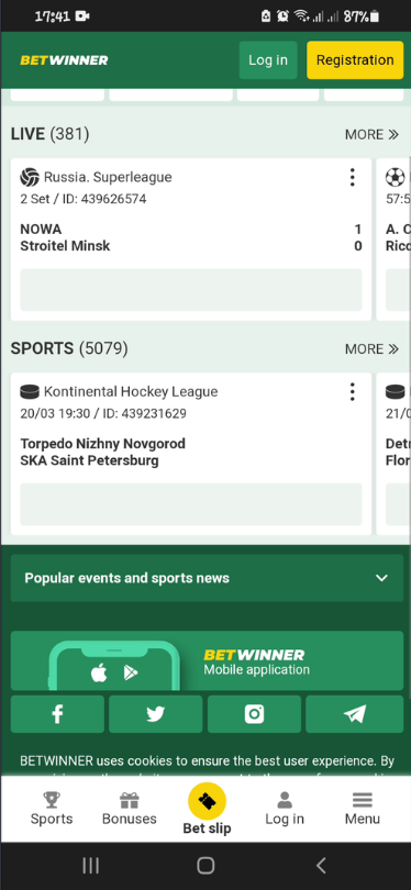 The apps offer all the same payment methods as the main betwinner.com website. You can top up your account in hundreds of ways, from bank cards to electronic payment systems, from cryptocurrencies to mobile payments.