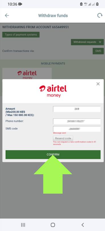 Currently, the bookie doesn’t offer SMS or USSD as a payout option. But here’s the silver lining: they provide a handy app and a mobile version of their website, making it a breeze to withdraw money. It takes quite a few minutes, but there’s one small catch – you’ll need an internet connection.