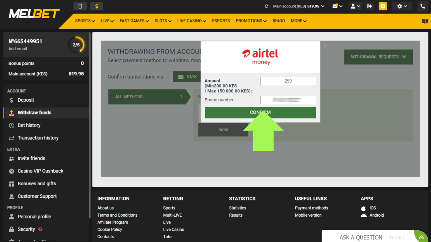 The second popular option is to withdraw funds using your smartphone or tablet if the MelBet app is installed. This is super convenient because your smartphone is always with you, making it easy to receive your payouts whenever possible. Let’s walk through the steps for this method.