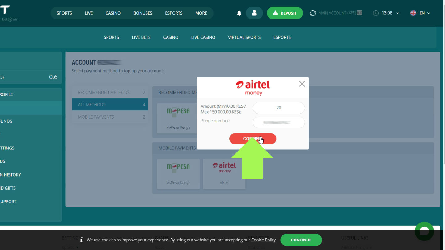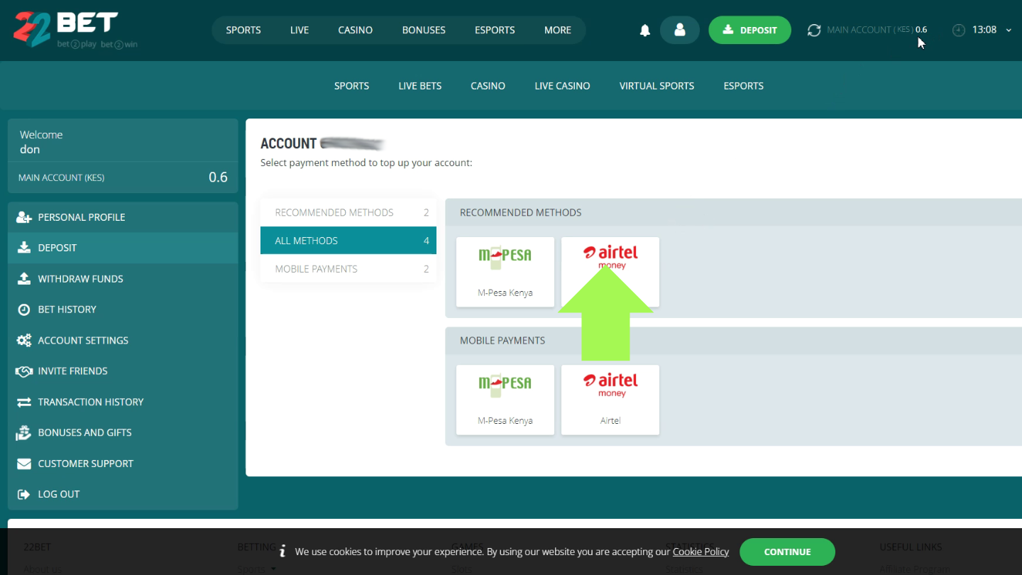 Similarly to M-Pesa, Airtel is another common payment system in African countries, including Kenya. 22Bet offers it as one of the ways to top up your account. Let’s check out how to do it.