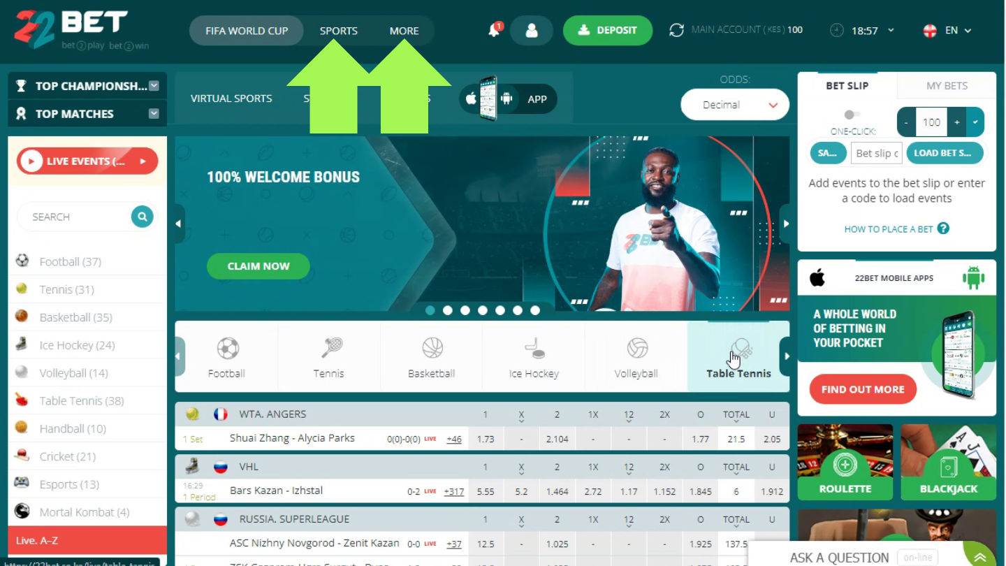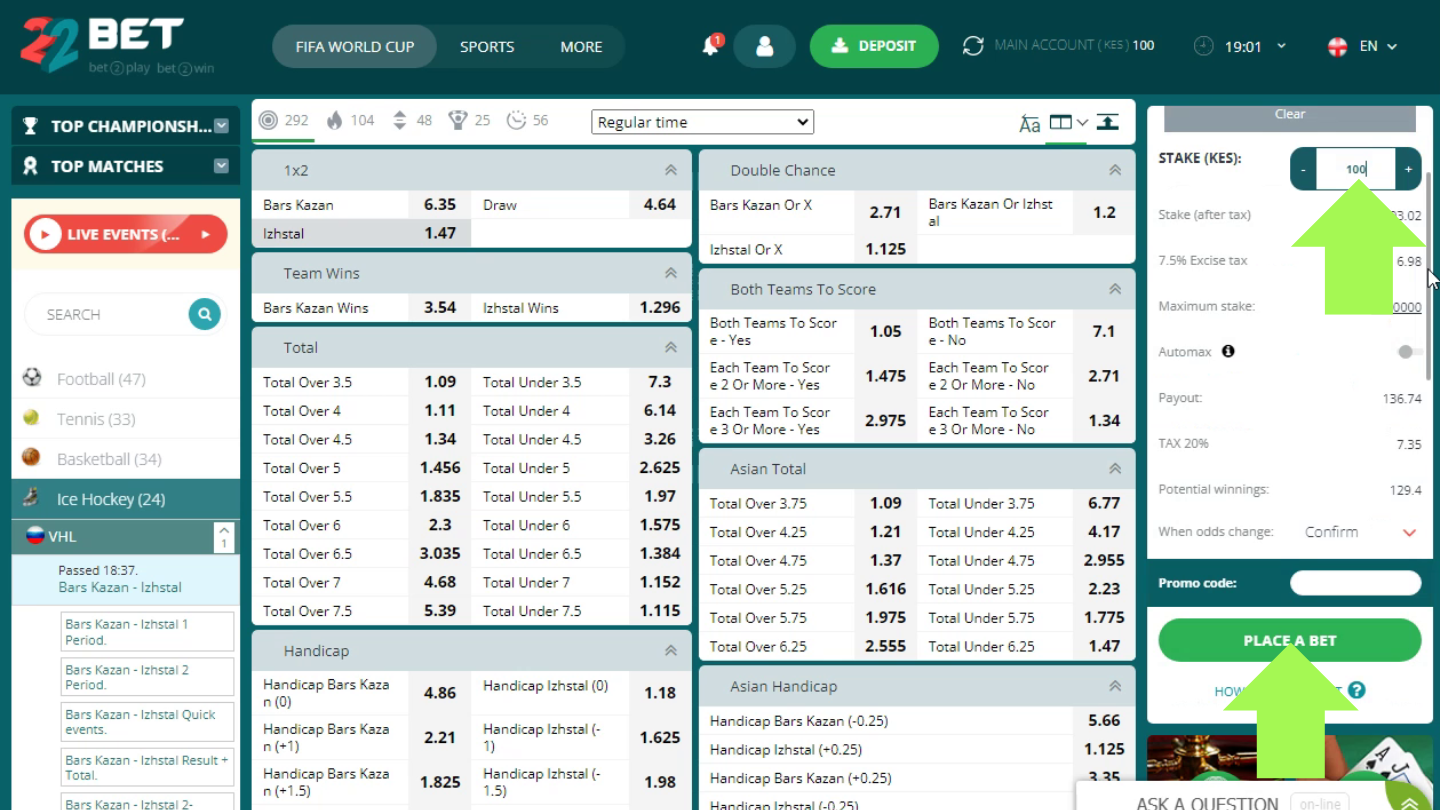 Fans of desktop devices can quickly and easily place a bet on the official 22Bet website. To do this, you need to follow these steps.
