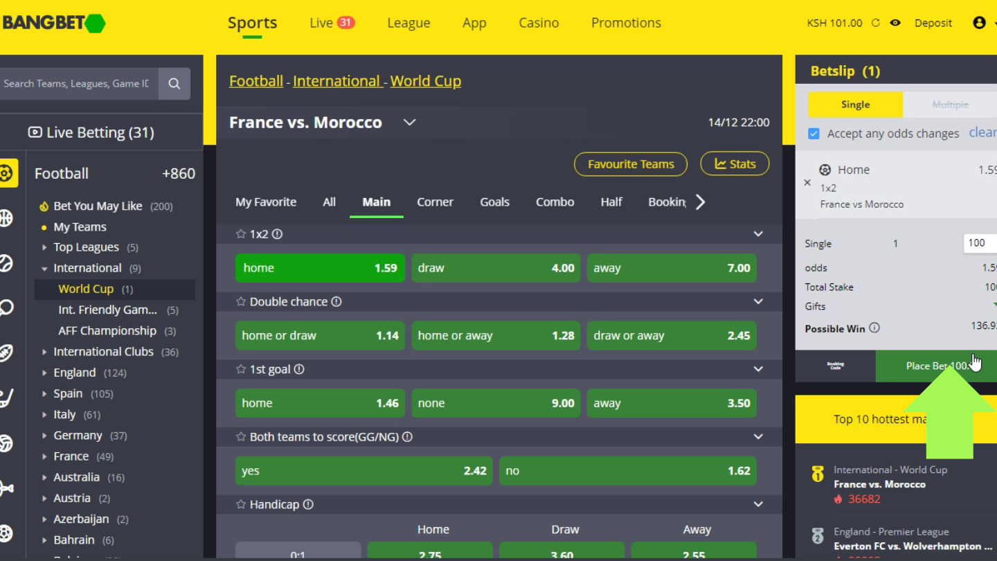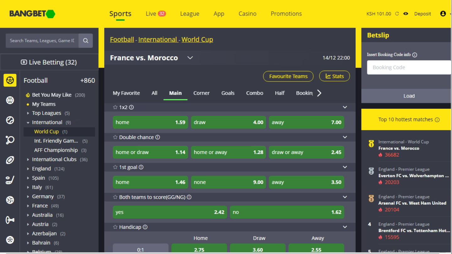 - Betting limits. BangBet allows its users to make stakes from 1 KES if they do not plan to claim any bonus, which might have other rules.