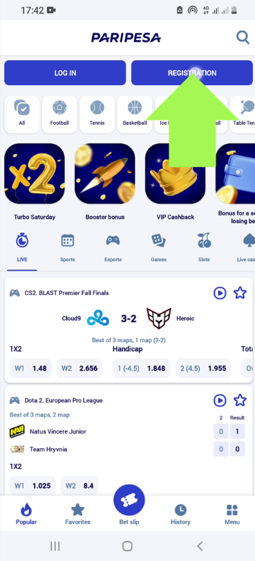 Firstly, open the Paripesa website via any available means. It doesn’t really matter if you use a phone or a standard desktop website version.