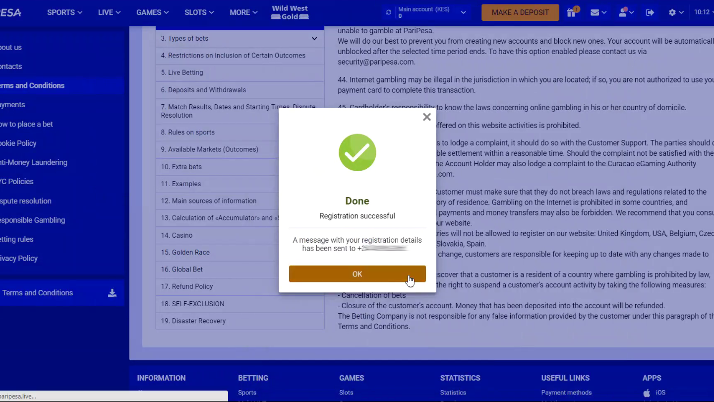 For now, the SMS signup is unavailable for punters from Kenya. However, they can use a convenient mobile version of the Paripesa website to create an account. It is simple to switch to it at the bottom of the website.
